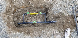 配管・Nano Flux接続部の漏水確認を行ってから、土やコンクリートなど元の環境に合わせて埋設します。